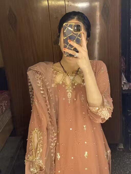 Elevate your festive style with this mauve faux georgette suit set featuring a heavily embroidered kurta, matching pants, and a beautifully designed dupatta. Adorned with delicate sequin work and crafted in premium georgette fabric, this outfit brings elegance and charm to weddings, parties, and celebrations. Fully stitched for comfort and ease, it is available in sizes M to XXL for the perfect fit.
