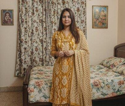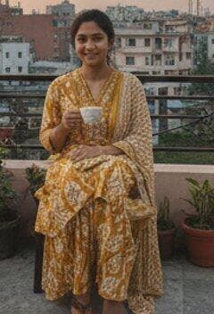 Brighten your ethnic wardrobe with this mustard yellow cotton printed suit set featuring a straight kurta, matching pants, and a coordinating dupatta. Designed with three quarter sleeves and crafted in breathable cotton fabric, it ensures comfort along with a chic traditional look. Perfect for festive occasions, office wear, or daily outings, this set blends elegance with simplicity. Available in sizes XXS to 4XL for the perfect fit.